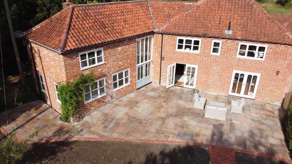 It was an absolute pleasure to complete this stunning Raj Blend sandstone patio and traditional redbrick path, on this stunning Norfolk home. The brief was to bring the inside out with a paved area that had to be in keeping with the house and mature gardens. Giving plenty of space for entertaining and lots of space for the children to enjoy.